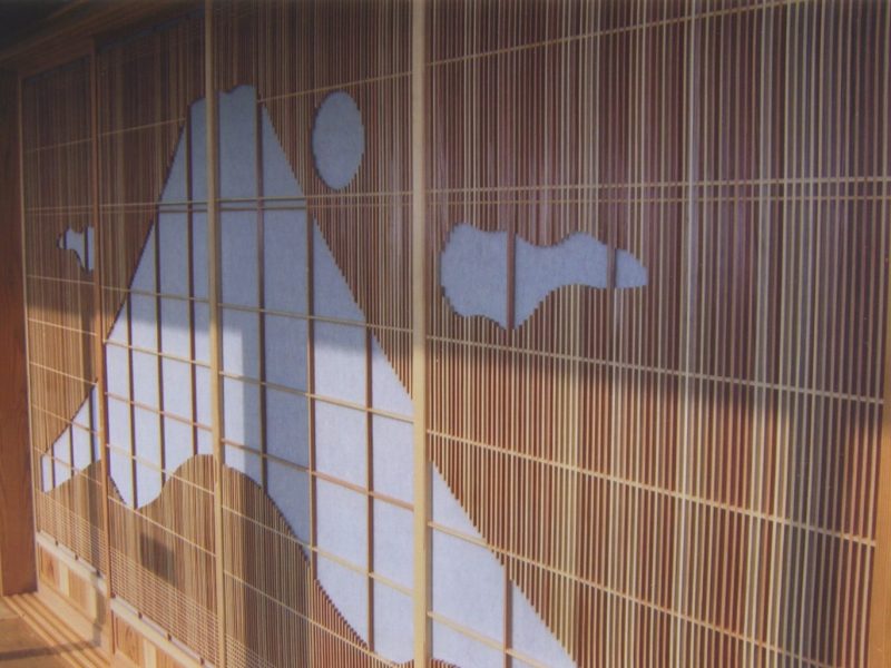 コメント 書院障子で富士山の形を表現した4枚障子を製作。数週間の製作時間をかけアクリルワーロンで明りを演出。