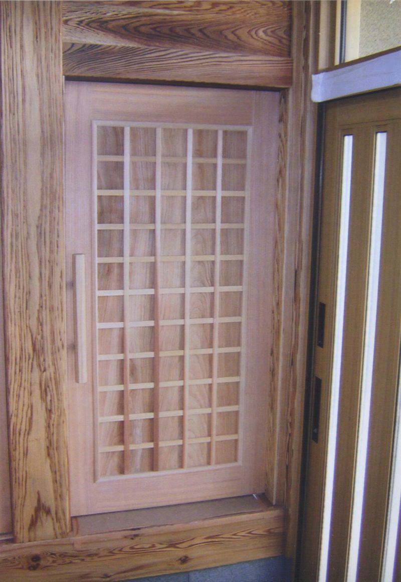コメント 片開き板戸と造作取手は和室造りの部屋にとけこむ。
