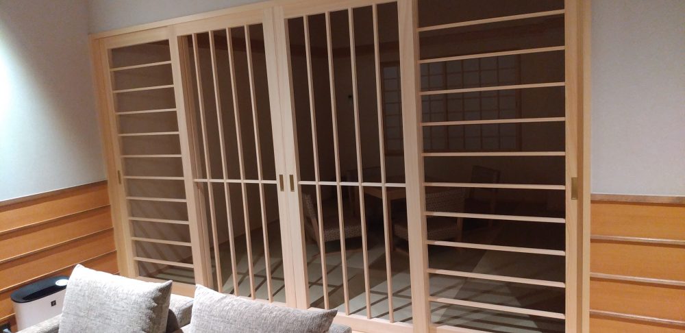 コメント 某施設の格子戸、アクリルワーロンを入れ和室を引き立てる