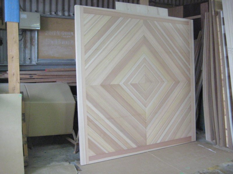 コメント 2メートル四方の杉板戸でパネル交互貼りの扉、製作に数週間かかった。
